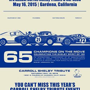 Visit the Shelby facility in Gardena, CA on Saturday, May 16, 2015 for the 3rd annual Carroll Shelby Tribute. •Celebrate the ground breaking of...