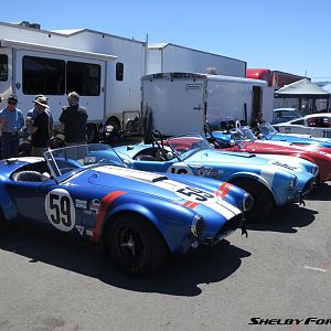 Cobras lined up at Mazda Raceway Laguna Seca 2015