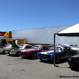 GT350's lined up at Mazda Raceway Laguna Seca 2015