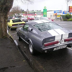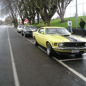 Shelby and a Boss302 out for a run in the rain.
